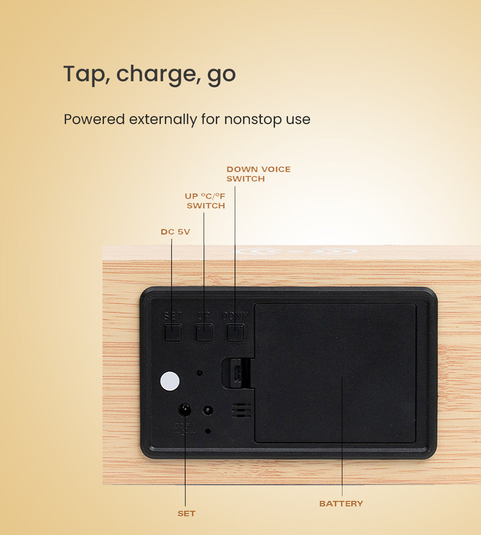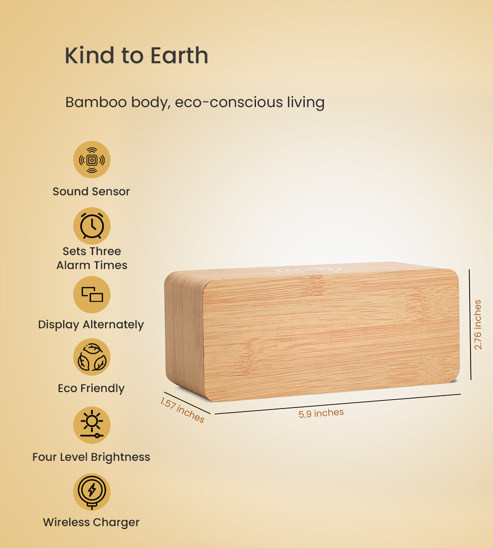 Material Used: Natural bamboo wood body, digital LED screen with four-level brightness control
